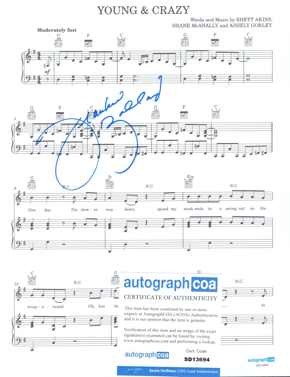 FRANKIE BALLARD SIGNED AUTOGRAPH LYRIC SHEET MUSIC YOUNG AND CRAZY ACOA COLLECTIBLE MEMORABILIA