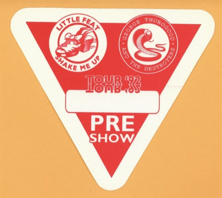 GEORGE THOROGOOD 1992 LITTLE FEAT CONCERT TOUR PRE SHOW BACKSTAGE PASS COLLECTIBLE MEMORABILIA