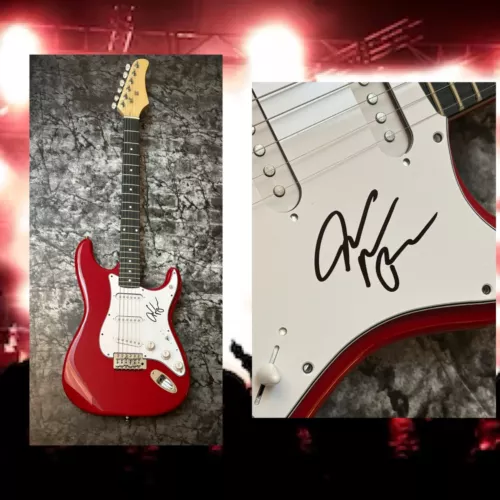 This hand-signed guitar is verified 100% genuine by professional authenticators and includes a Certificate of Authenticity card. A numbered tamper-proof hologram is attached to the item so you can verify its authenticity on our website at your convenience.