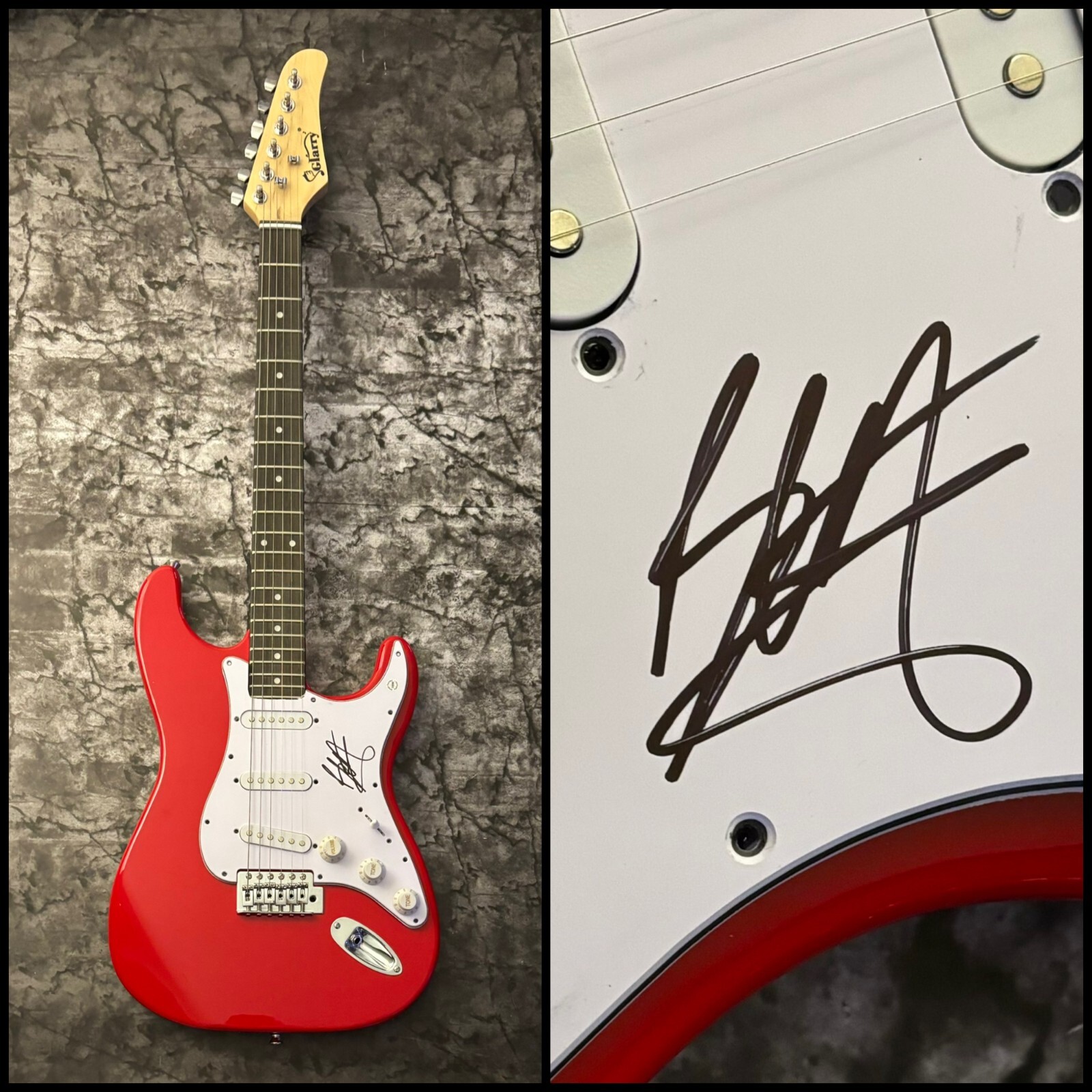 This hand-signed guitar is verified 100% genuine by professional authenticators and includes a Certificate of Authenticity card. A numbered tamper-proof hologram is attached to the item so you can verify its authenticity on our website at your convenience.