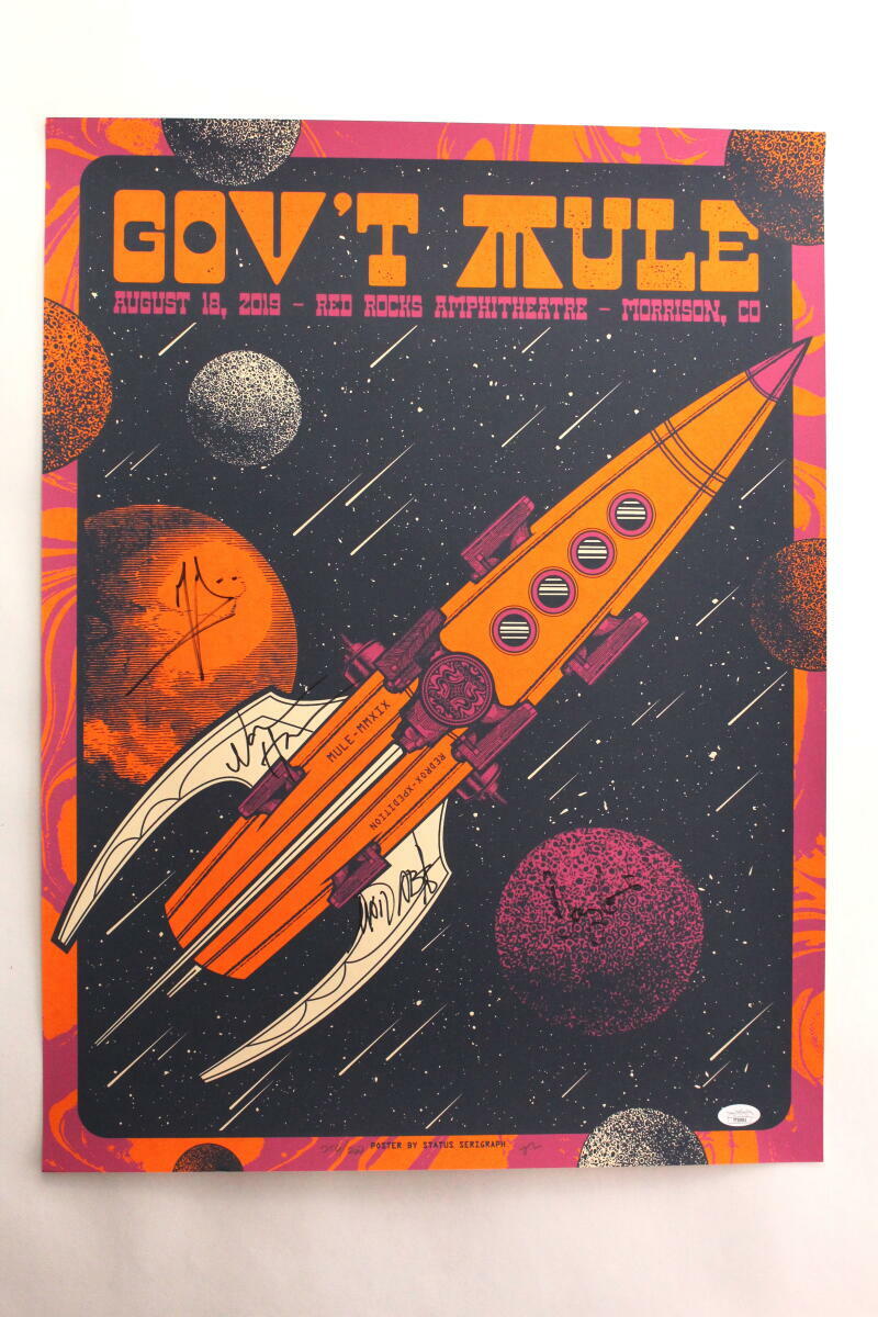 GOV’T MULE SIGNED AUTOGRAPH 18X24 CONCERT TOUR POSTER – RED ROCKS 8/18/19 W/ JSA COLLECTIBLE MEMORABILIA