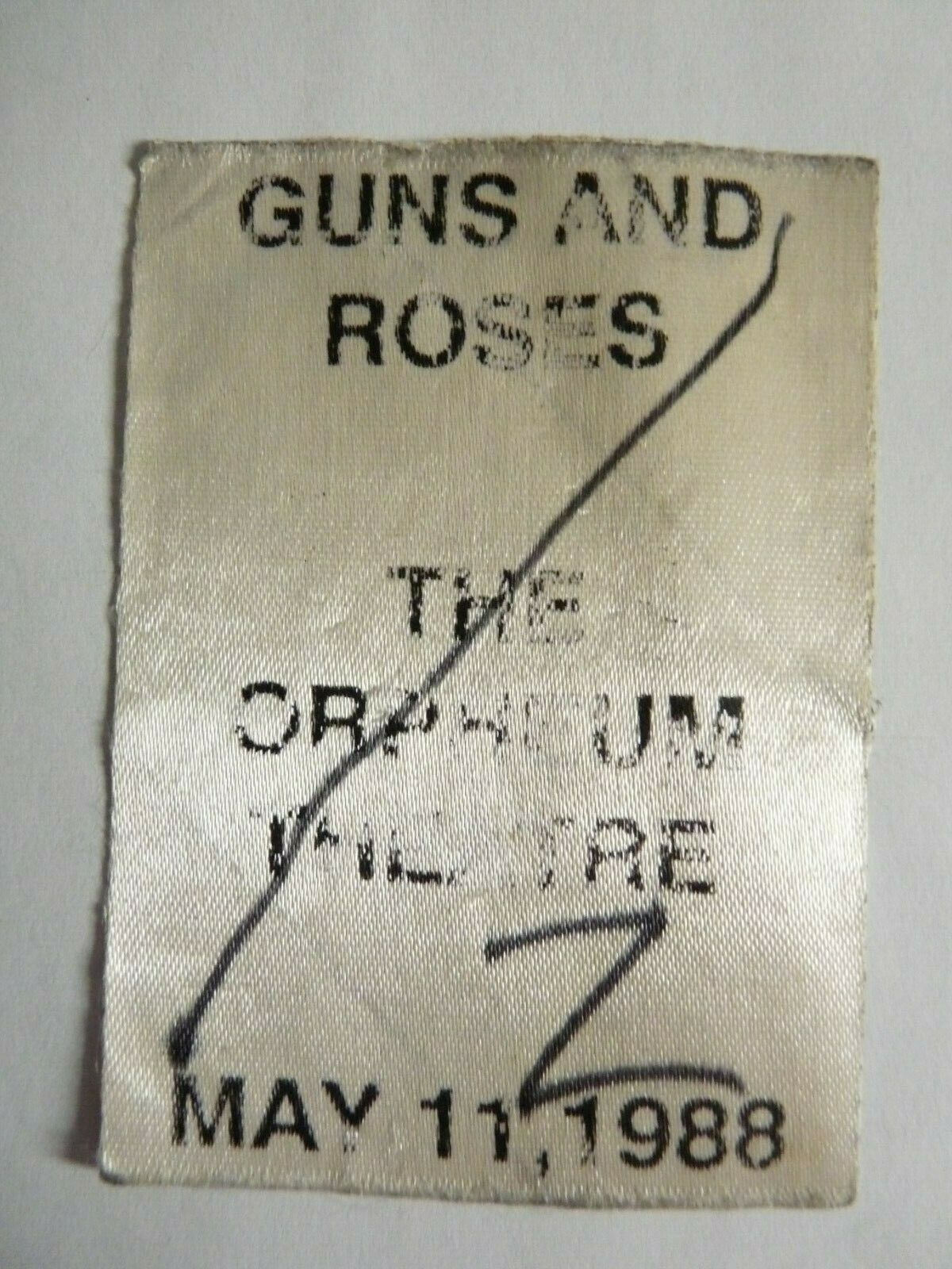 GUNS & ROSES RARE MAY 11 1988 ORPHEUM THEATRE BACKSTAGE PASS COLLECTIBLE MEMORABILIA