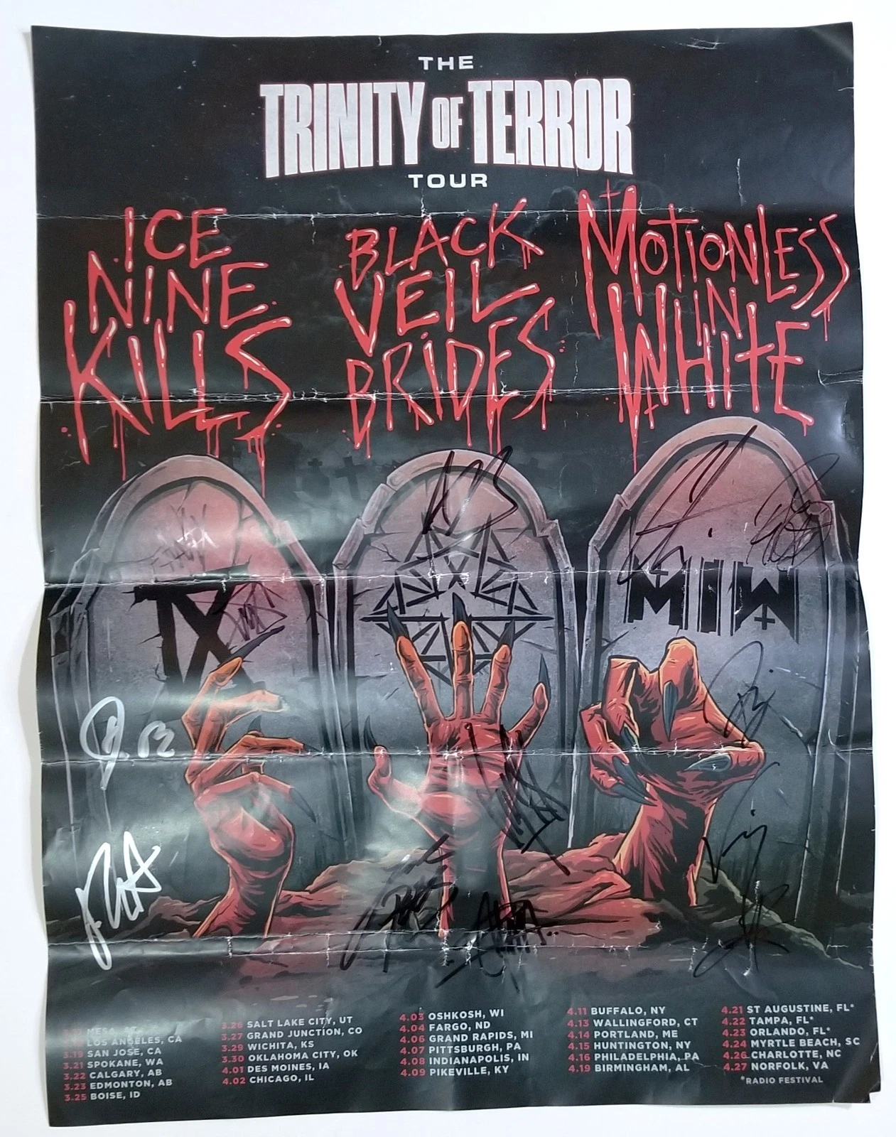 ICE NINE KILLS – BLACK VEIL BRIDES – MOTIONLESS IN WHITE BAND SIGNED POSTER COA COLLECTIBLE MEMORABILIA