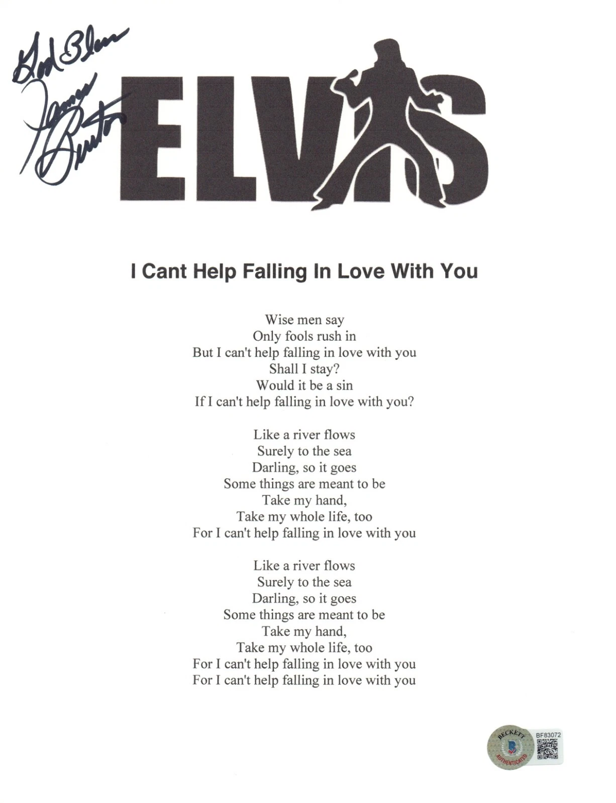 JAMES BURTON SIGNED ELVIS I CAN’T HELP FALLING IN LOVE WITH YOU LYRIC SHEET BAS COLLECTIBLE MEMORABILIA