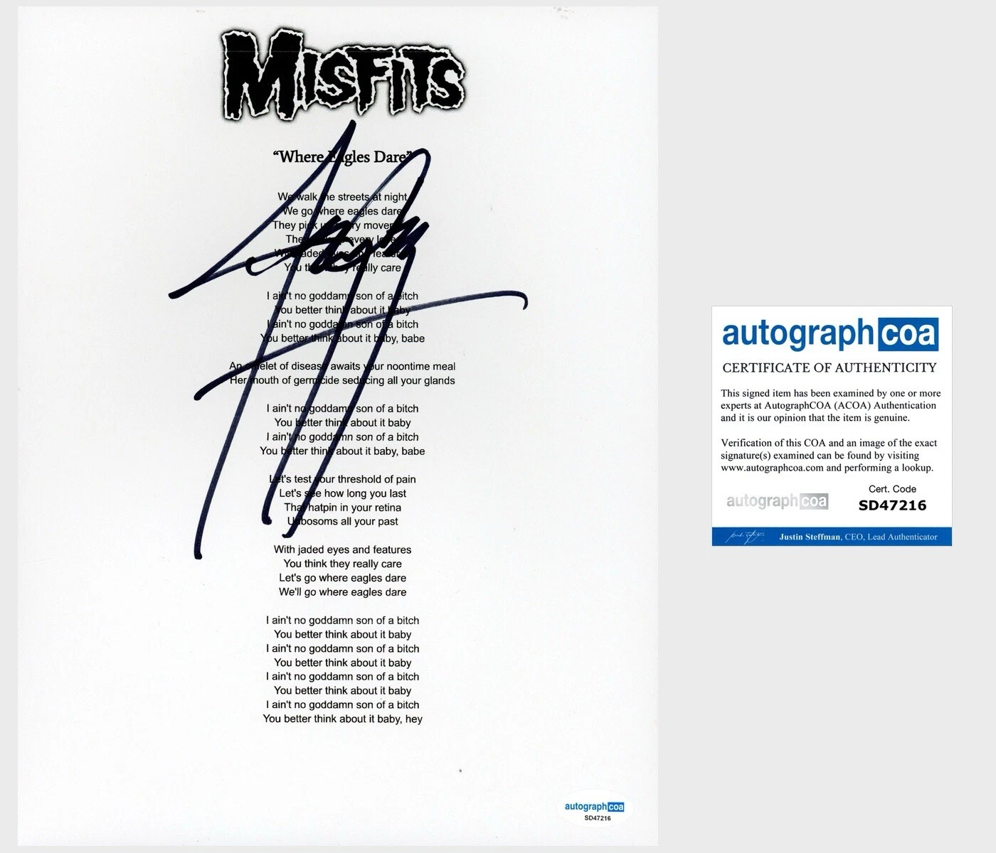 JERRY ONLY ‘THE MISFITS’ BASSIST SIGNED ‘WHERE EAGLES DARE’ LYRIC SHEET ACOA COLLECTIBLE MEMORABILIA