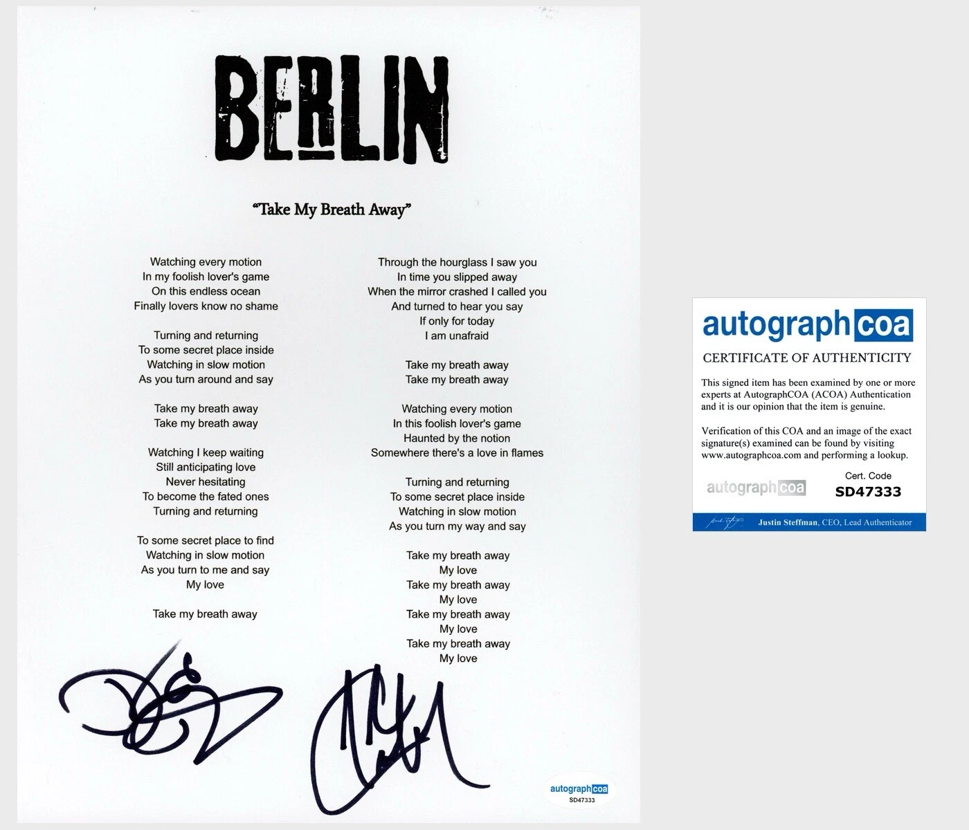 ‘JOHN CRAWFORD & DAVID DIAMOND’ ‘BERLIN’ BAND SIGNED LYRIC SHEET ACOA COLLECTIBLE MEMORABILIA
