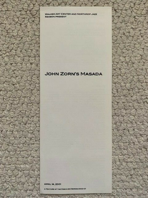JOHN ZORN CONCERT PROGRAM FROM 2001 SHOW IN MINNESOTA AWESOME+RARE COLLECTIBLE MEMORABILIA