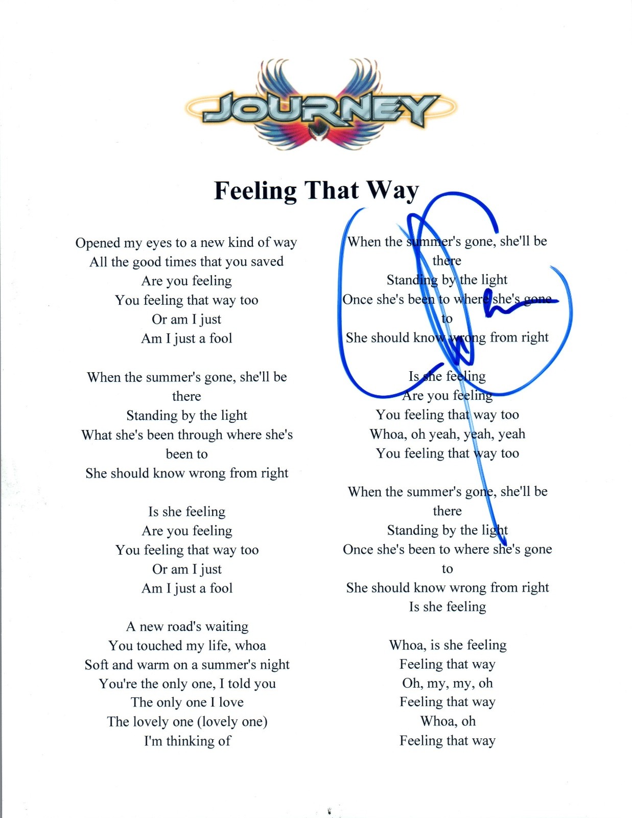 JONATHAN CAIN SIGNED AUTOGRAPH JOURNEY “FEELING THAT WAY” LYRIC SHEET COA COLLECTIBLE MEMORABILIA