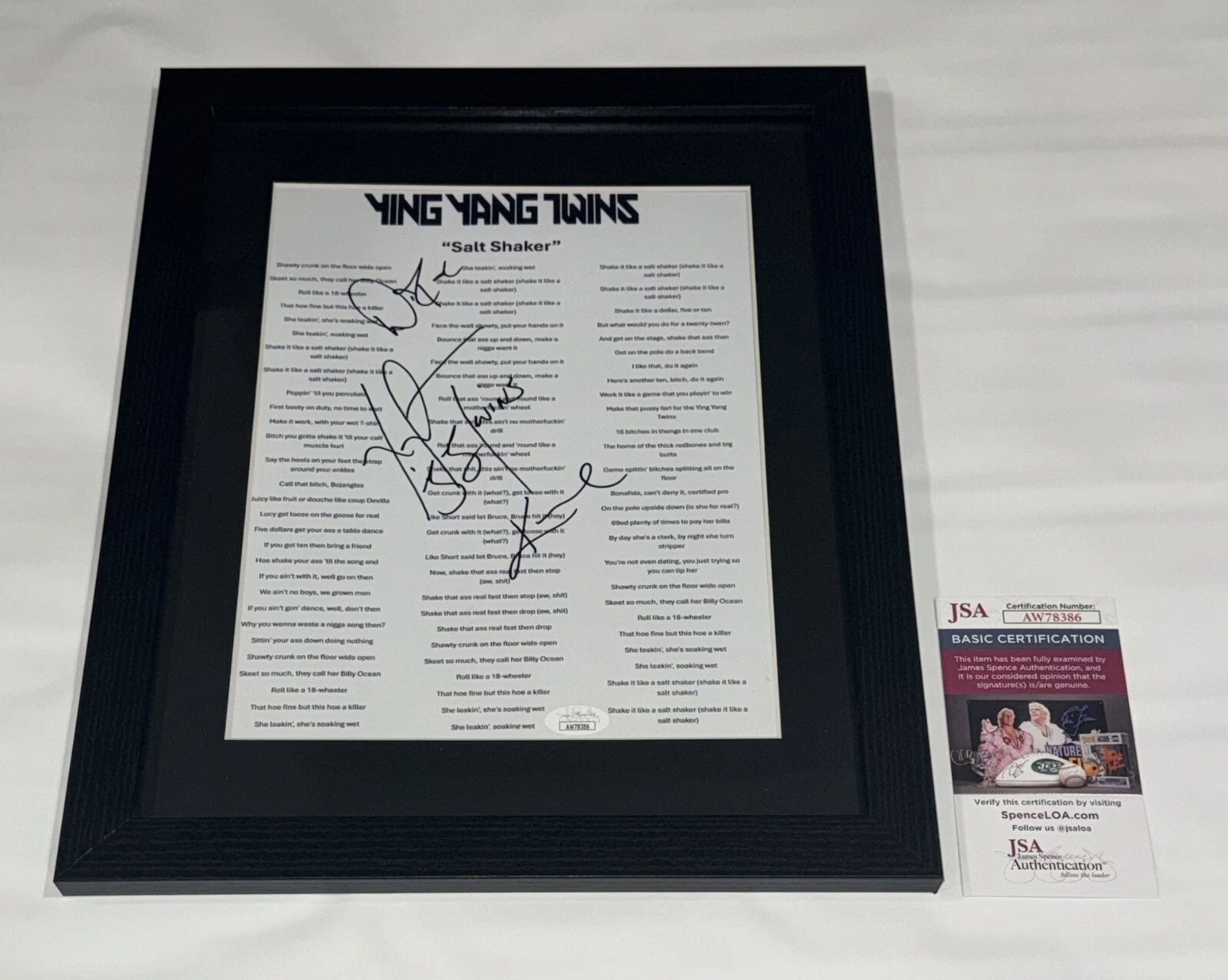 KANE THE YING YANG TWINS SIGNED FRAMED SALT SHAKER LYRIC SHEET D-ROC JSA COA COLLECTIBLE MEMORABILIA