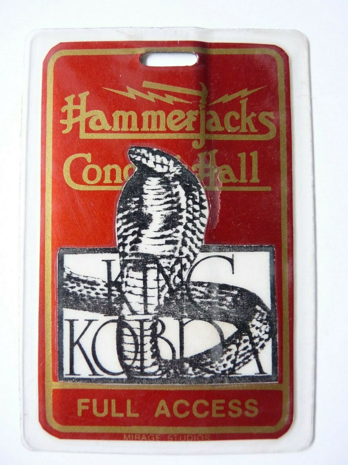 KING KOBRA HAMMERJACKS TOUR CONCERT ISSUED USED BACKSTAGE PASS LAMINATE #1 COLLECTIBLE MEMORABILIA