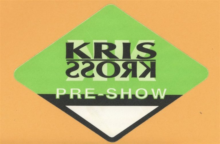 KRIS KROSS 1992 TOTALLY KROSSED OUT CONCERT TOUR PRE SHOW BACKSTAGE PASS COLLECTIBLE MEMORABILIA
