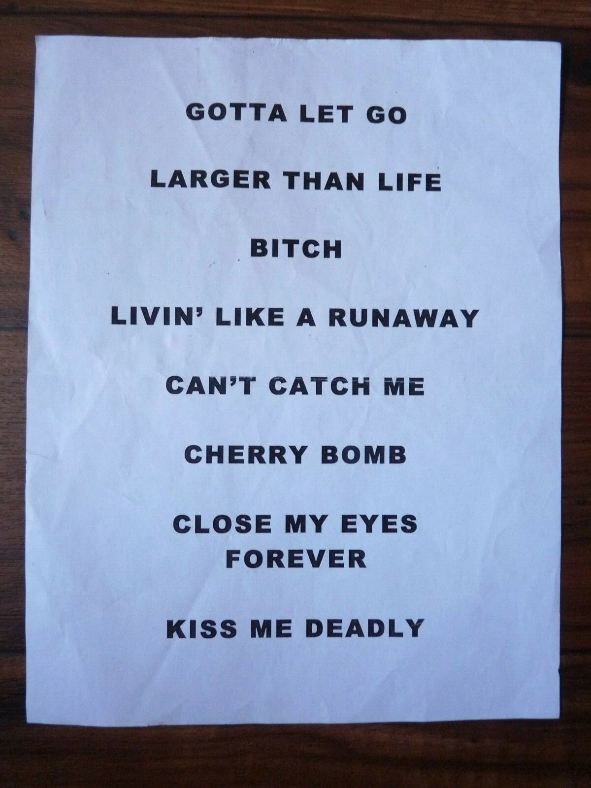 LITA FORD VINTAGE STAGE TOUR CONCERT USED SET LIST #2 COLLECTIBLE MEMORABILIA