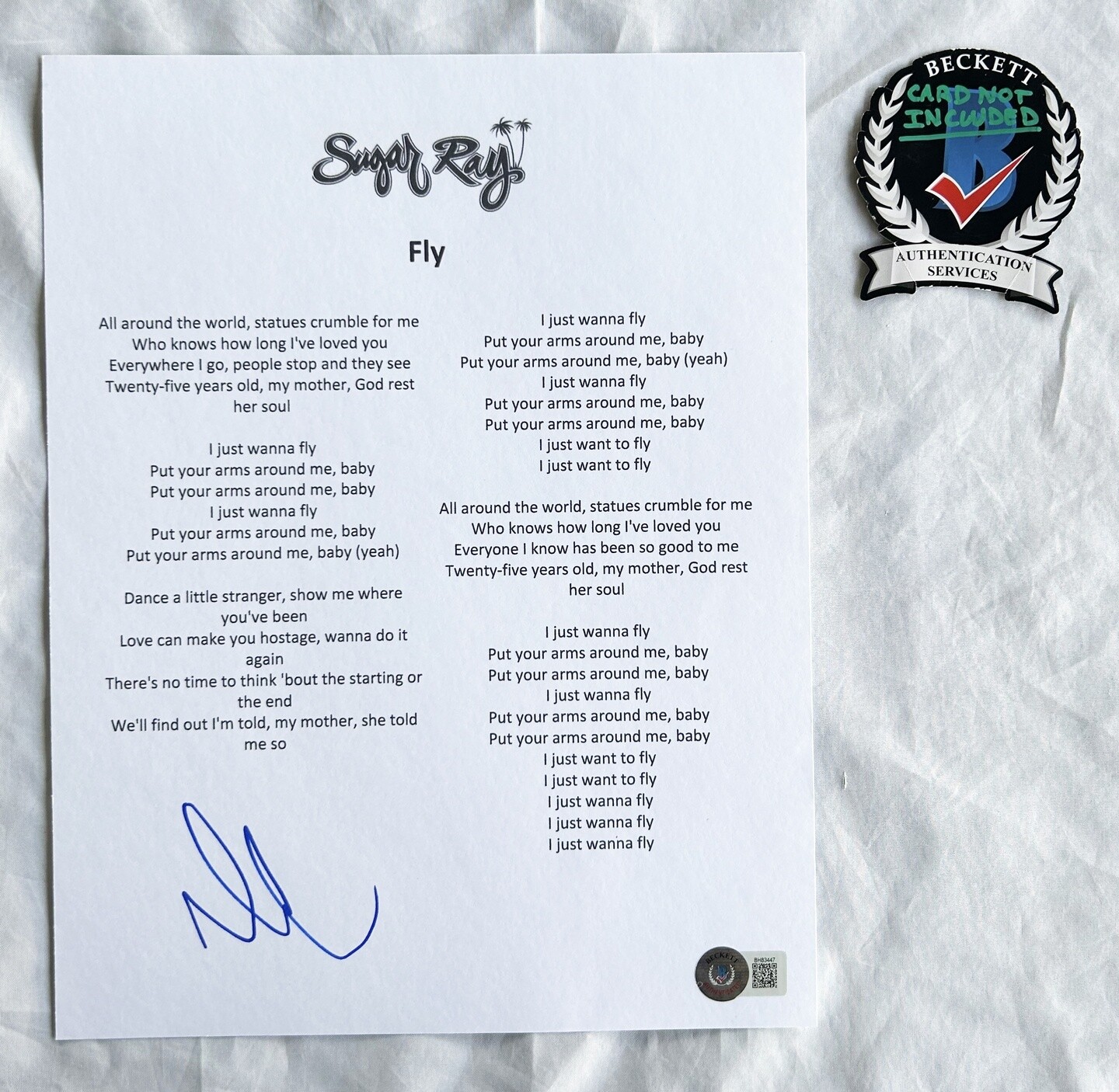 MARK MCGRATH SIGNED LYRIC SHEET FLY SUGAR RAY BAND BECKETT BAS COA COLLECTIBLE MEMORABILIA