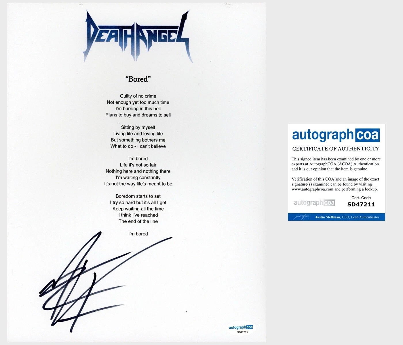 MARK OSEGUEDA ‘DEATH ANGEL’ BAND LEAD SINGER SIGNED ‘BORED’ LYRIC SHEET ACOA COLLECTIBLE MEMORABILIA