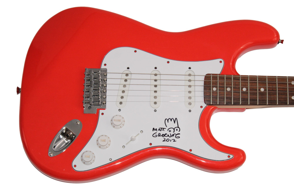 MATT GROENING SIGNED AUTOGRAPH FENDER GUITAR – ORIGINAL ART SIMPSONS SKETCH JSA COLLECTIBLE MEMORABILIA