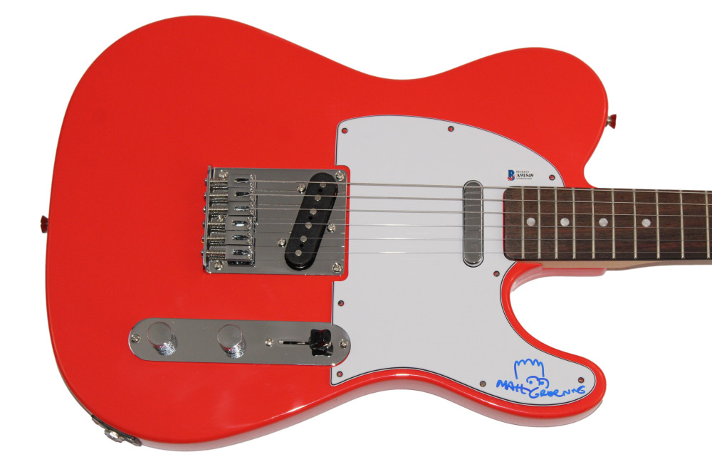 MATT GROENING SIGNED AUTOGRAPH FENDER GUITAR – ORIGINAL ART SKETCH SIMPSONS BAS COLLECTIBLE MEMORABILIA