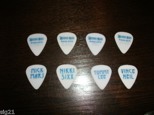 MOTLEY CRUE 4 GUITAR PICK SET EUROPE 2010 BLUE ON MILK COLLECTIBLE MEMORABILIA