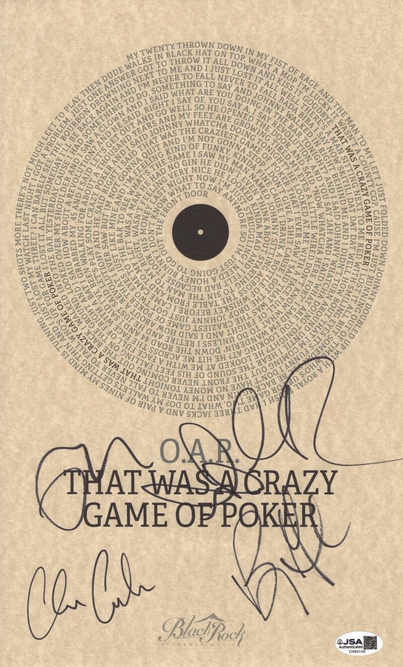 OAR FULL BAND COMPLETE SIGNED AUTOGRAPH CRAZY GAME OF POKER LYRIC SHEET JSA COA COLLECTIBLE MEMORABILIA