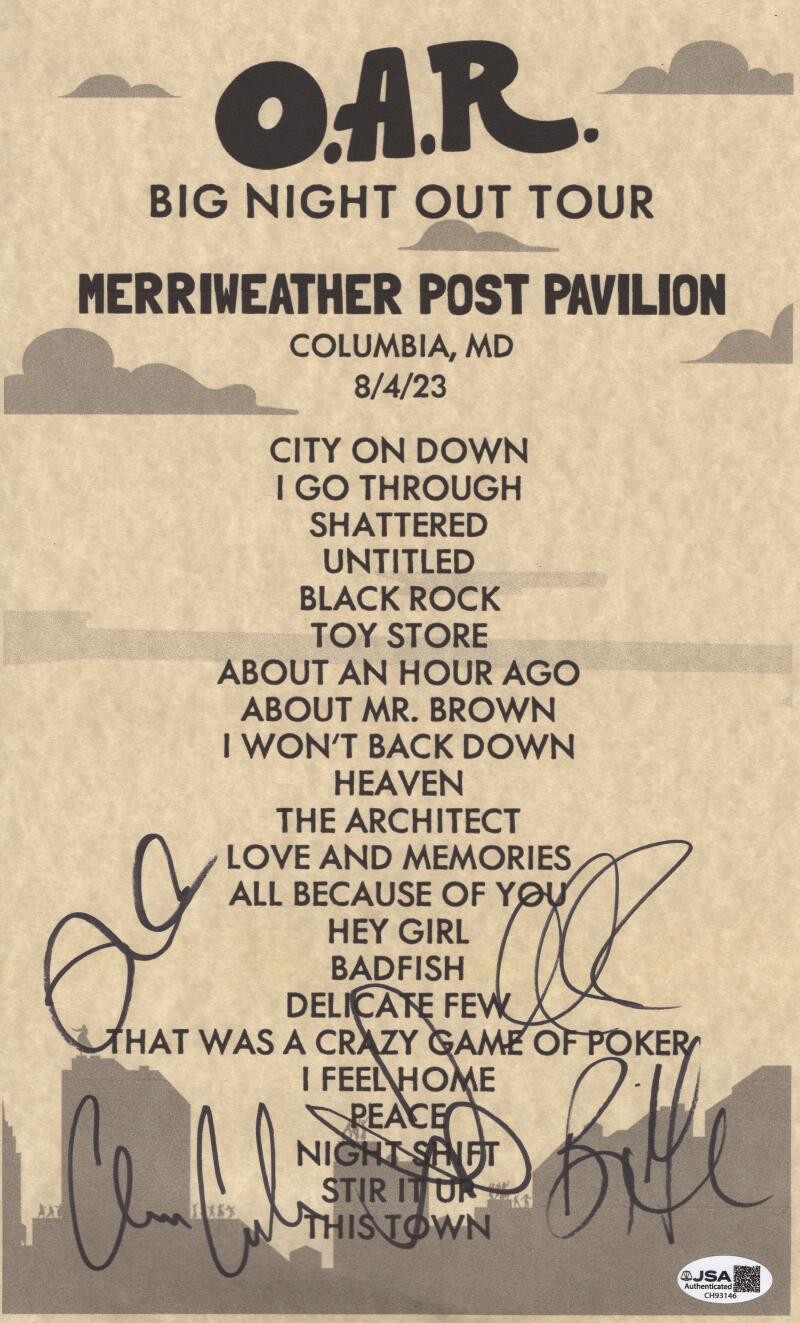 OAR FULL BAND COMPLETE X5 SIGNED AUTOGRAPH COMMEMORATIVE SET LIST 8/4/23 JSA COA COLLECTIBLE MEMORABILIA