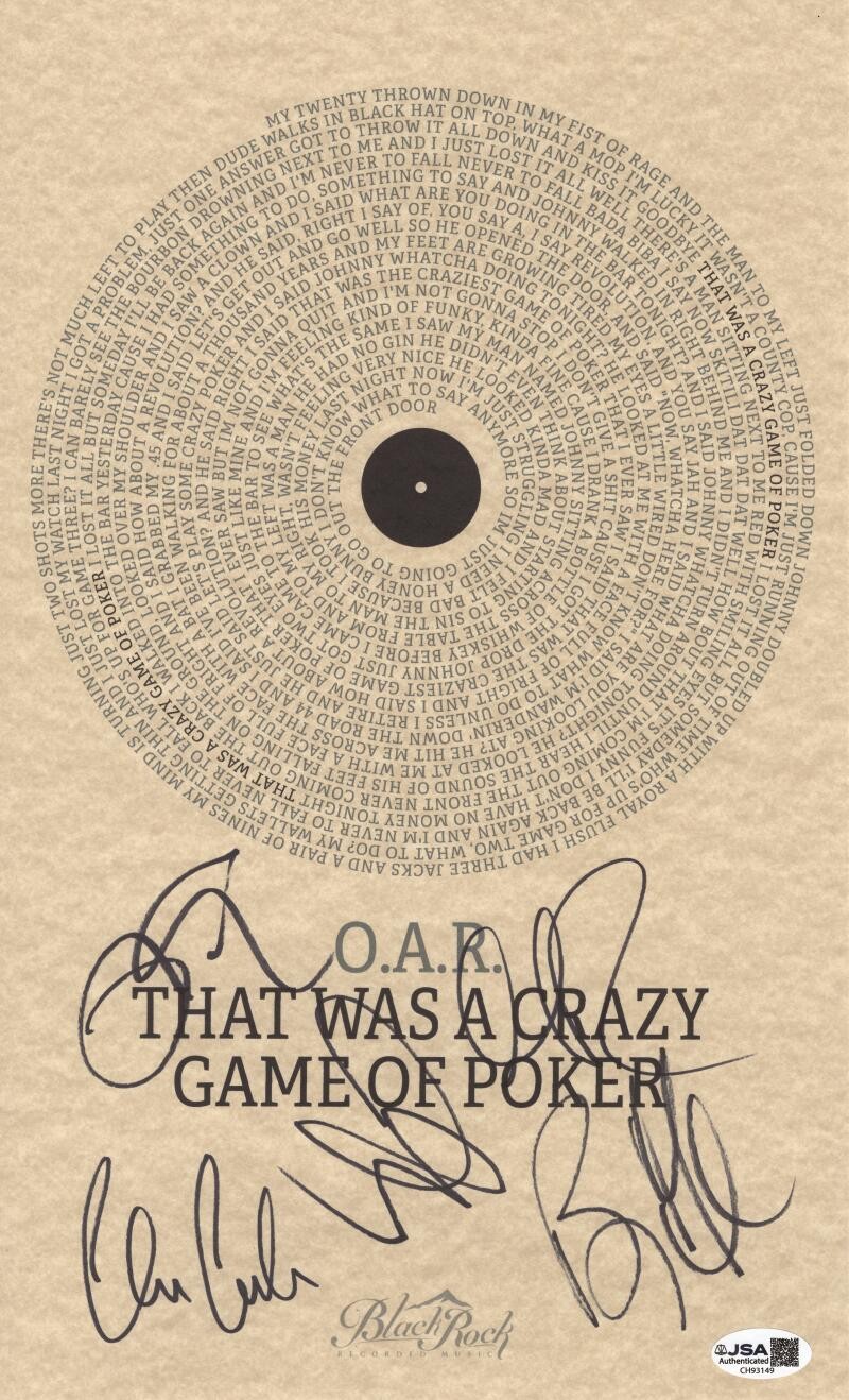 OAR FULL BAND SIGNED AUTOGRAPH THAT WAS A CRAZY GAME OF POKER LYRIC SHEET W/ COA COLLECTIBLE MEMORABILIA