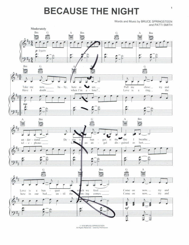 PATTI SMITH SIGNED AUTOGRAPH BECAUSE THE NIGHT SHEET MUSIC W/ BRUCE SPRINGSTEEN COLLECTIBLE MEMORABILIA