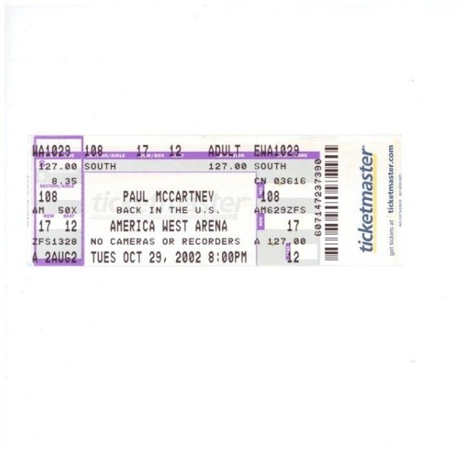 PAUL MCCARTNEY 2002 BACK IN THE USA TICKET COLLECTIBLE MEMORABILIA