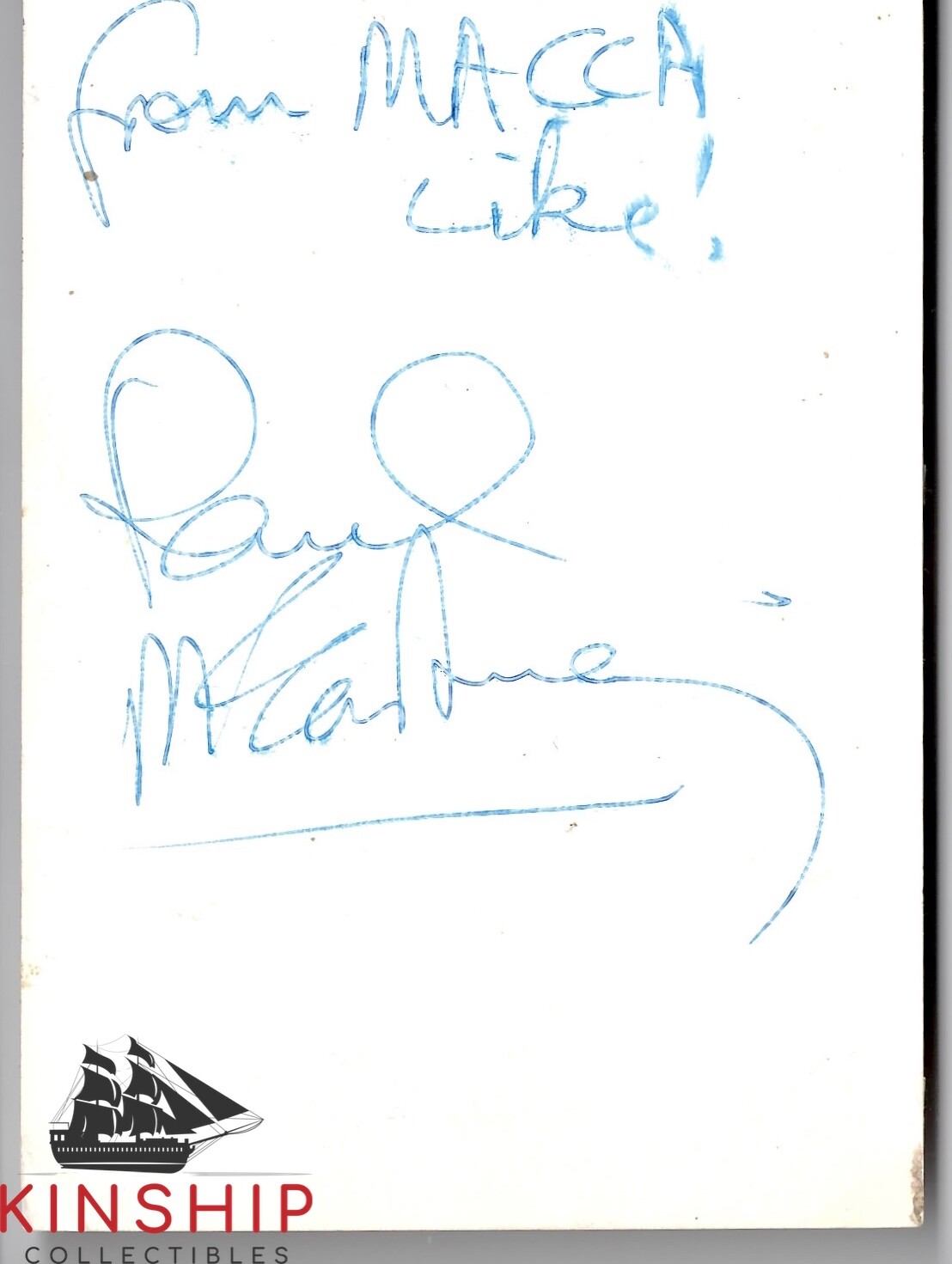 PAUL MCCARTNEY SIGNED PHOTO (CUT) JSA LOA INSCRIBED NICKNAME “MACCA” RARE Z804 COLLECTIBLE MEMORABILIA