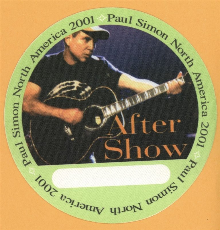 PAUL SIMON 2001 YOU’RE THE ONE CONCERT TOUR AFTER SHOW BACKSTAGE PASS COLLECTIBLE MEMORABILIA