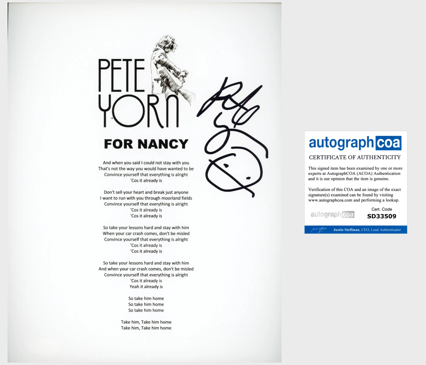 PETE YORN SIGNED AUTOGRAPH FOR NANCY LYRIC SHEET W/PROOF & ACOA COA COLLECTIBLE MEMORABILIA