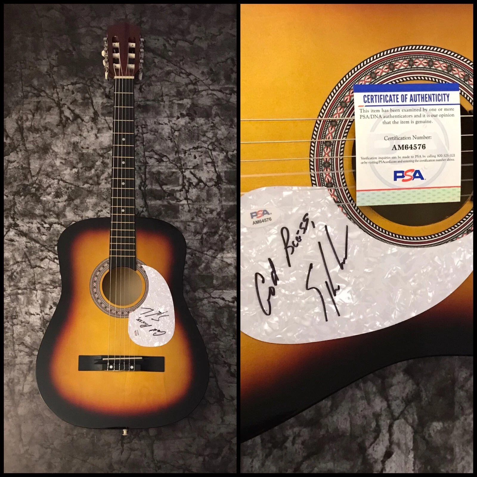 This hand-signed guitar is verified 100% genuine by professional authenticators and includes a Certificate of Authenticity card. A numbered tamper-proof hologram is attached to the item so you can verify its authenticity on our website at your convenience.
