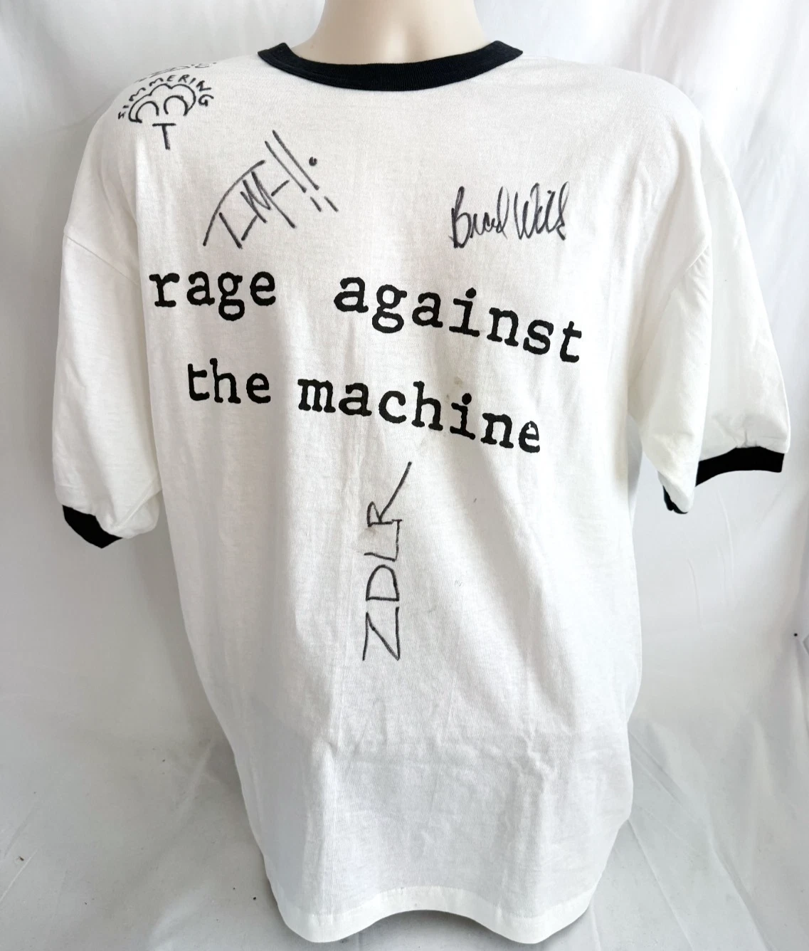 RAGE AGAINST THE MACHINE SIGNED 90’S VINTAGE XL SHIRT JSA LOA AUTOGRAPHED + PASS COLLECTIBLE MEMORABILIA
