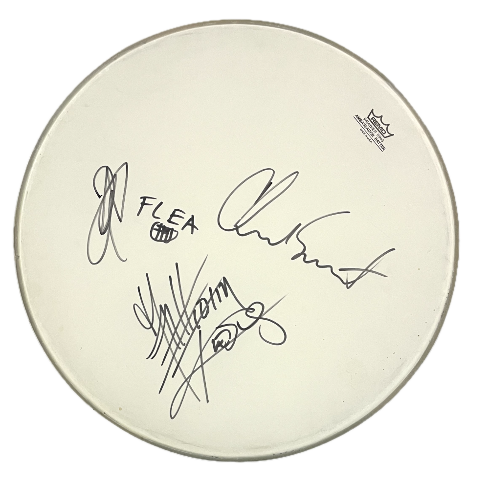 RED HOT CHILI PEPPERS BAND SIGNED AUTOGRAPH 16″ DRUMHEAD – ANTHONY KIEDIS +3 JSA COLLECTIBLE MEMORABILIA