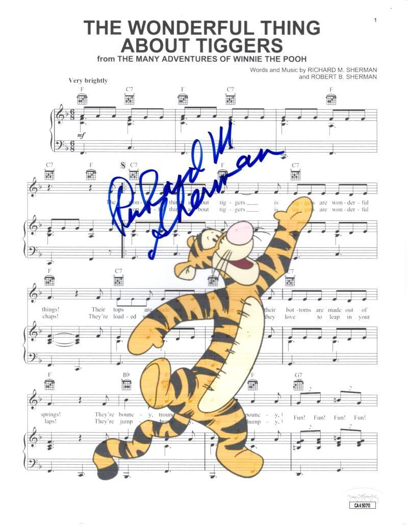 RICHARD M SHERMAN SIGNED AUTOGRAPH DISNEY TIGGER CUSTOM SHEET MUSIC 1/1 JSA COA COLLECTIBLE MEMORABILIA