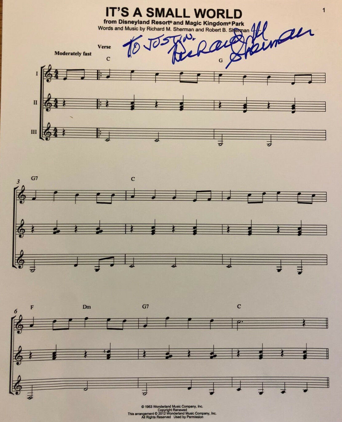 RICHARD M SHERMAN SIGNED AUTOGRAPHED 8×10 SHEET MUSIC IT’S A SMALL WORLD COLLECTIBLE MEMORABILIA