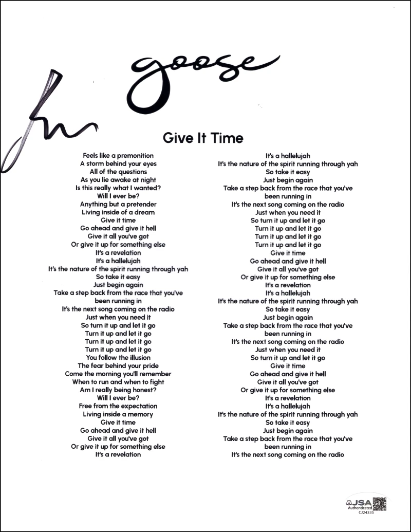 RICK MITAROTONDA GOOSE SIGNED AUTOGRAPH GIVE IT TIME LYRIC SHEET W/ JSA COA COLLECTIBLE MEMORABILIA