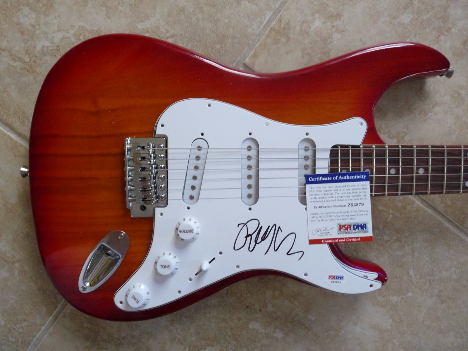 Get this rare, hand-signed guitar now. At Autographia, all autographed guitars carry a Certificate of Authenticity card with a dual matching hologram. Every item in our shop has been inspected and certified genuine by industry-leading authenticators.