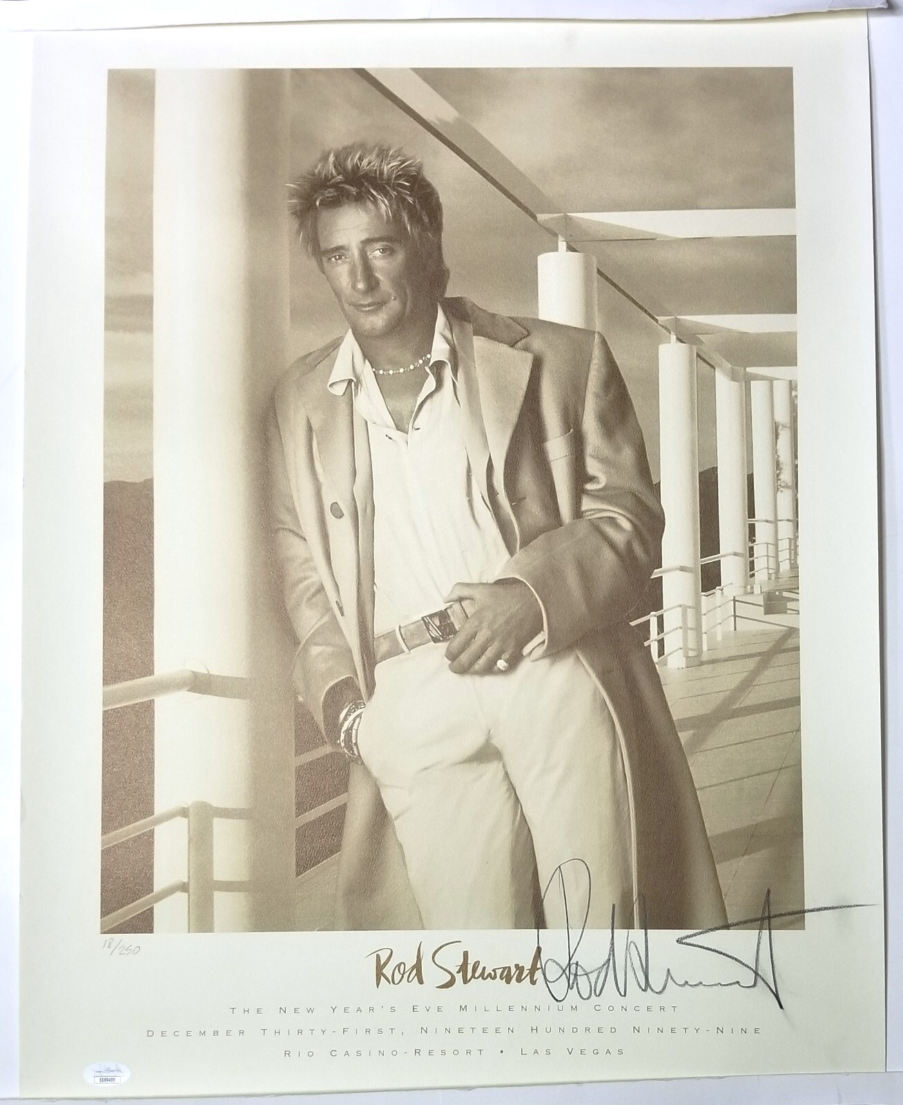 ROD STEWART SIGNED 1999 MILLENIUM CONCERT PROMO POSTER 18/250 JSA COA AUTOGRAPH COLLECTIBLE MEMORABILIA