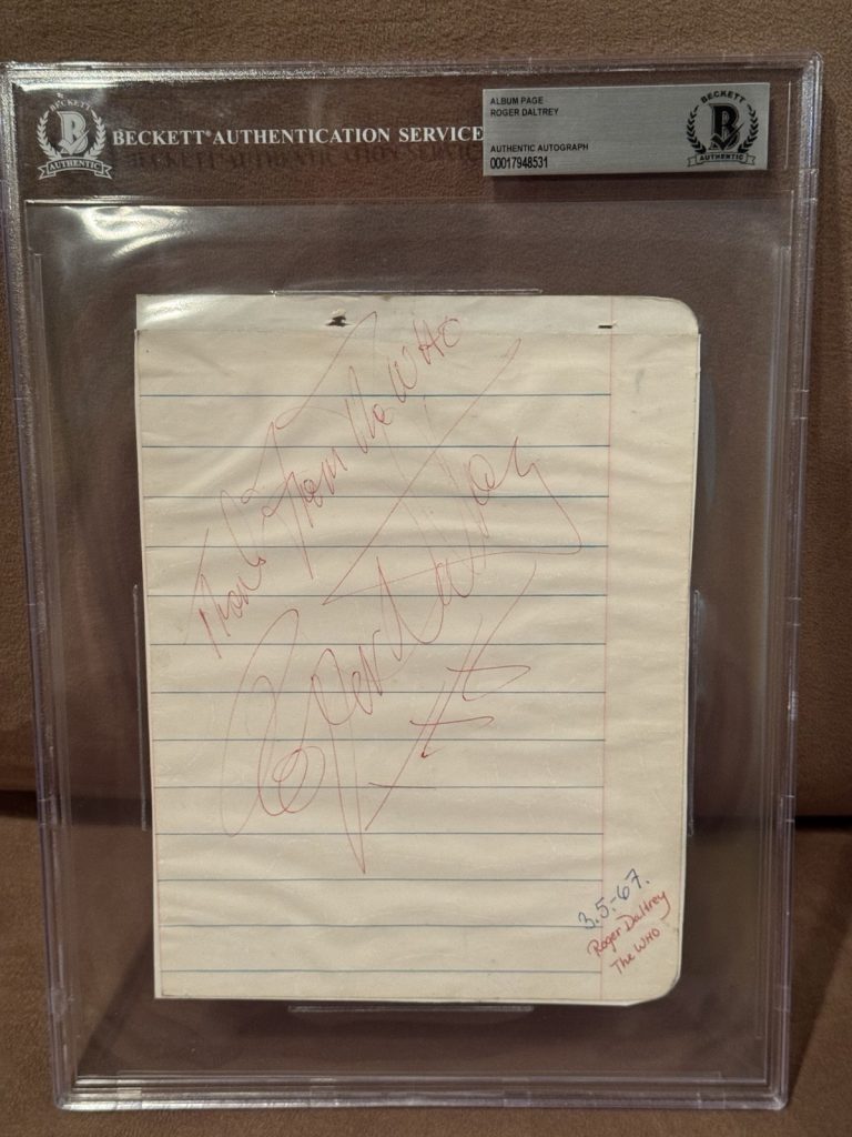 ROGER DALTREY THE WHO AUTHENTIC SIGNED LARGE ALBUM PAGE BECKETT SLABBED 3/5/67 COLLECTIBLE MEMORABILIA