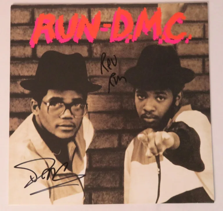 RUN DMC SIGNED AUTOGRAPH AUTO “RUN-DMC S/T” ALBUM VINYL LP BY 2 JSA COLLECTIBLE MEMORABILIA