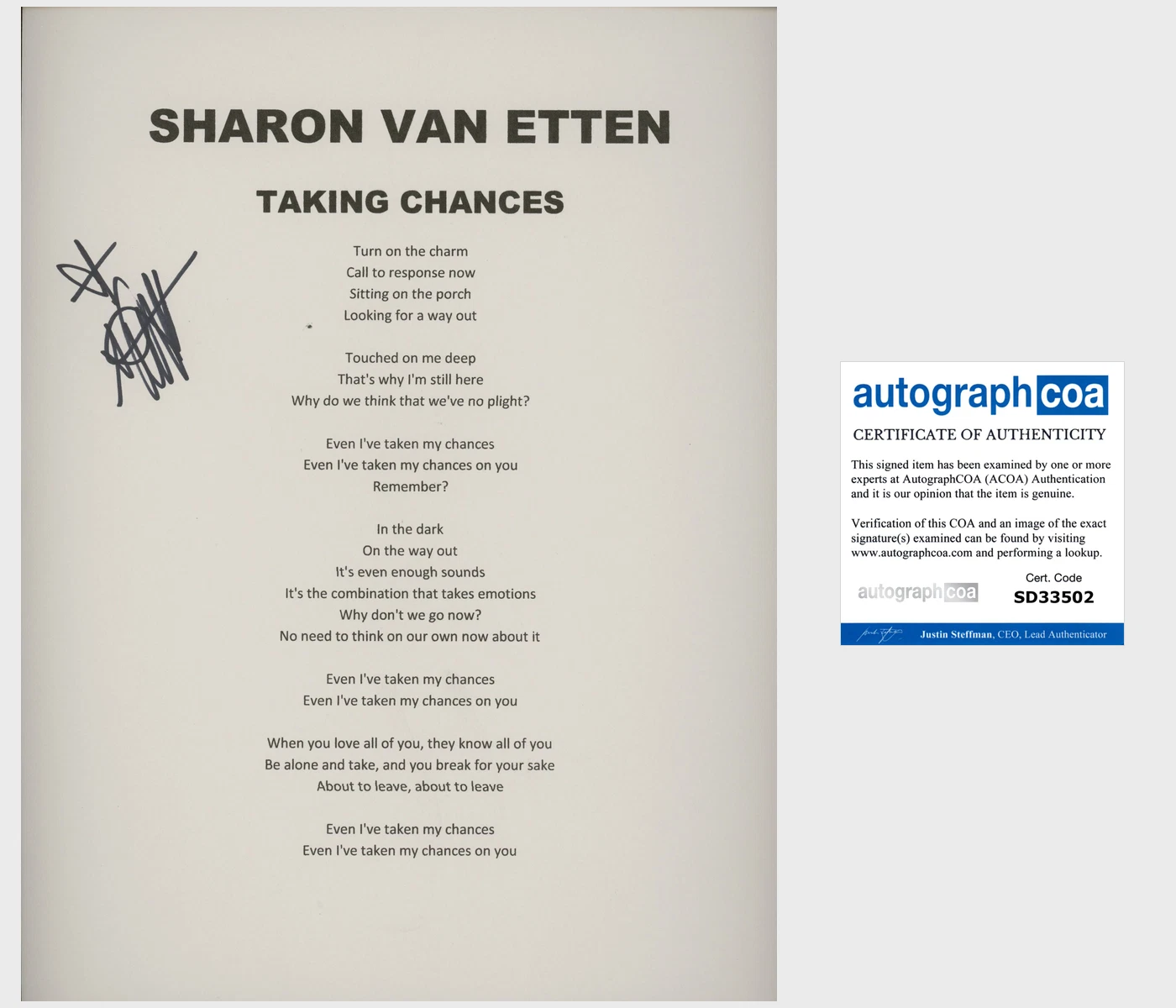 SHARON VAN ETTEN SIGNED AUTOGRAPH TAKING CHANCES 8.5″X11″ LYRIC SHEET LYRICS COLLECTIBLE MEMORABILIA