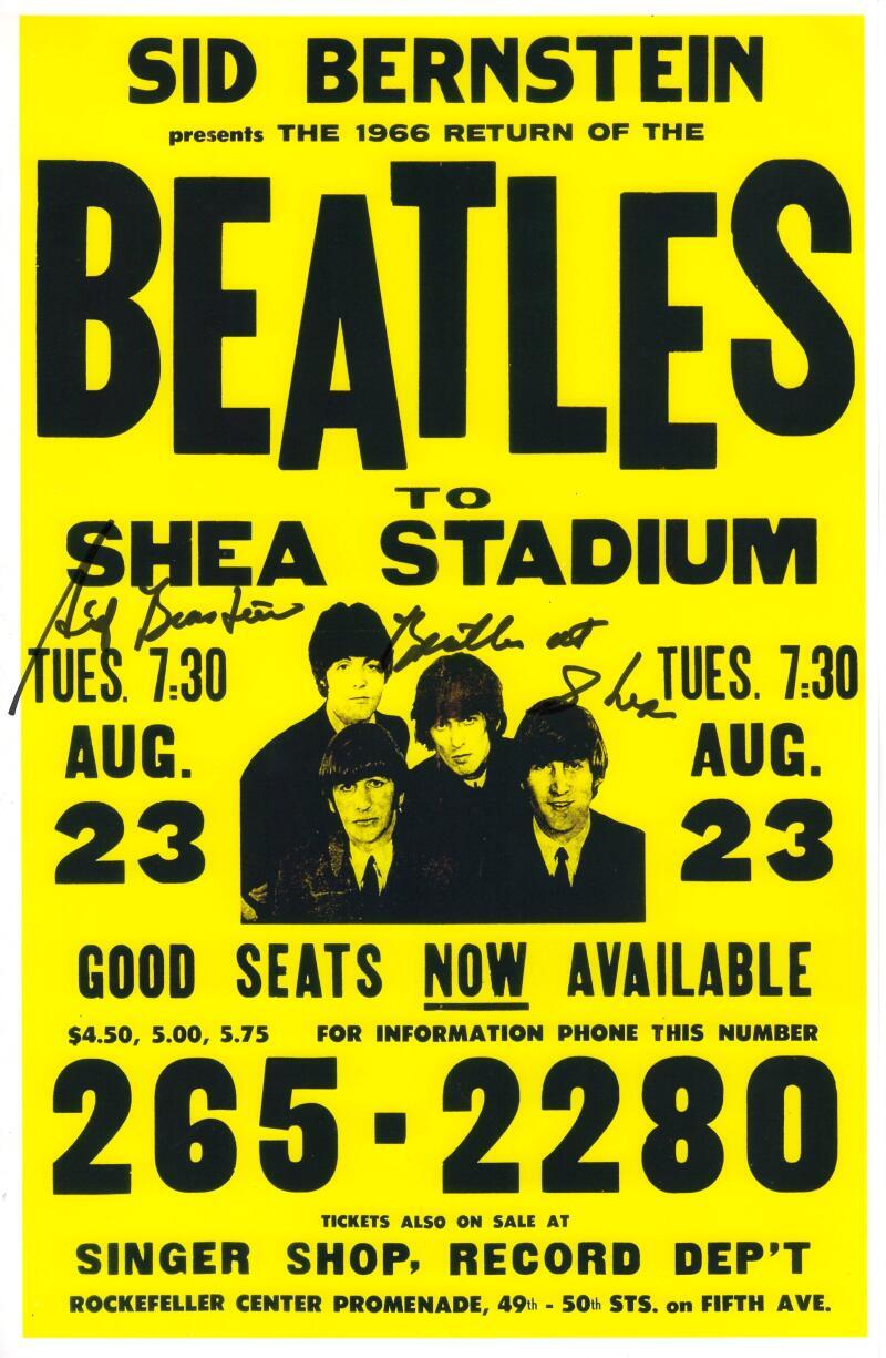 SID BERNSTEIN SIGNED AUTOGRAPH 11×17 RETURN OF THE BEATLES REPLICA POSTER W/ JSA COLLECTIBLE MEMORABILIA