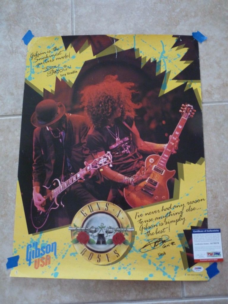 SLASH GUNS ROSES RARE 1988 GIBSON SIGNED AUTOGRAPHED 18×24 POSTER PSA CERTIFIED COLLECTIBLE MEMORABILIA