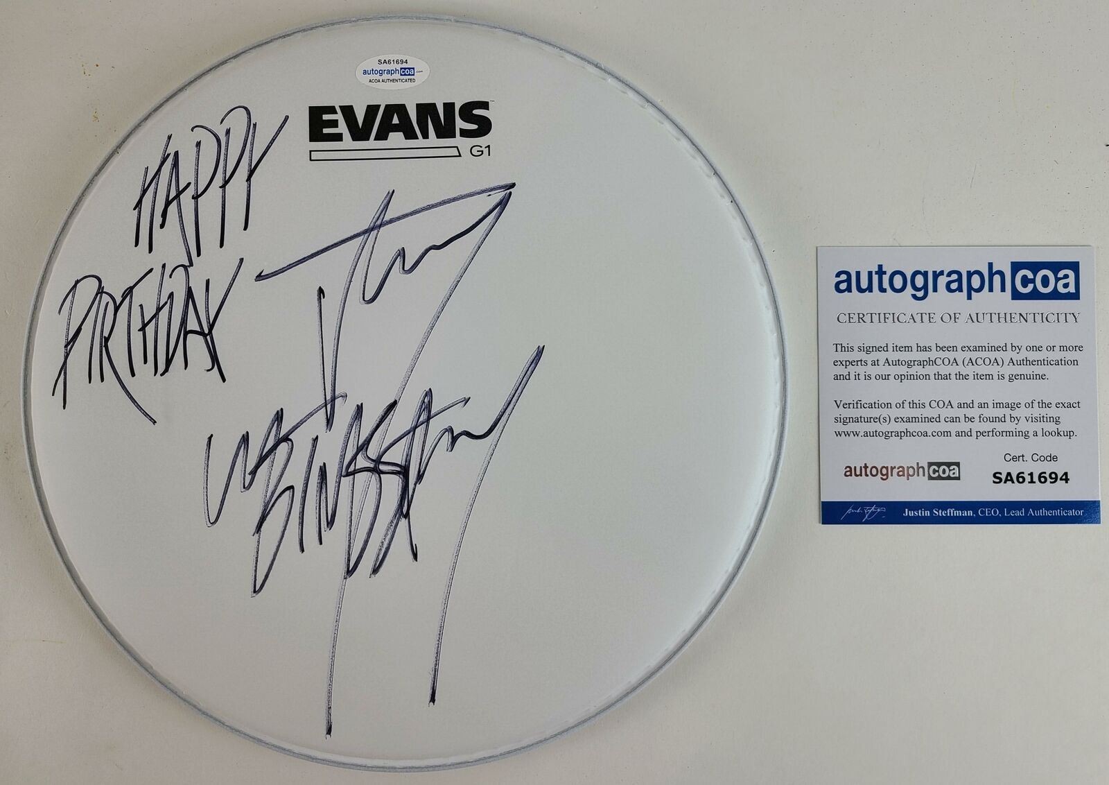 SLIPKNOT JAY WEINBERG SIGNED EVANS DRUMHEAD HAPPY BIRTHDAY ACOA COLLECTIBLE MEMORABILIA