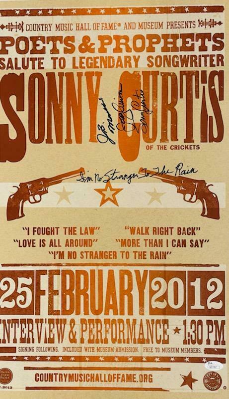 SONNY CURTIS ALLISON MAULDIN SIGNED AUTOGRAPH 13×21 HATCH PRINT JSA WITH LYRICS COLLECTIBLE MEMORABILIA