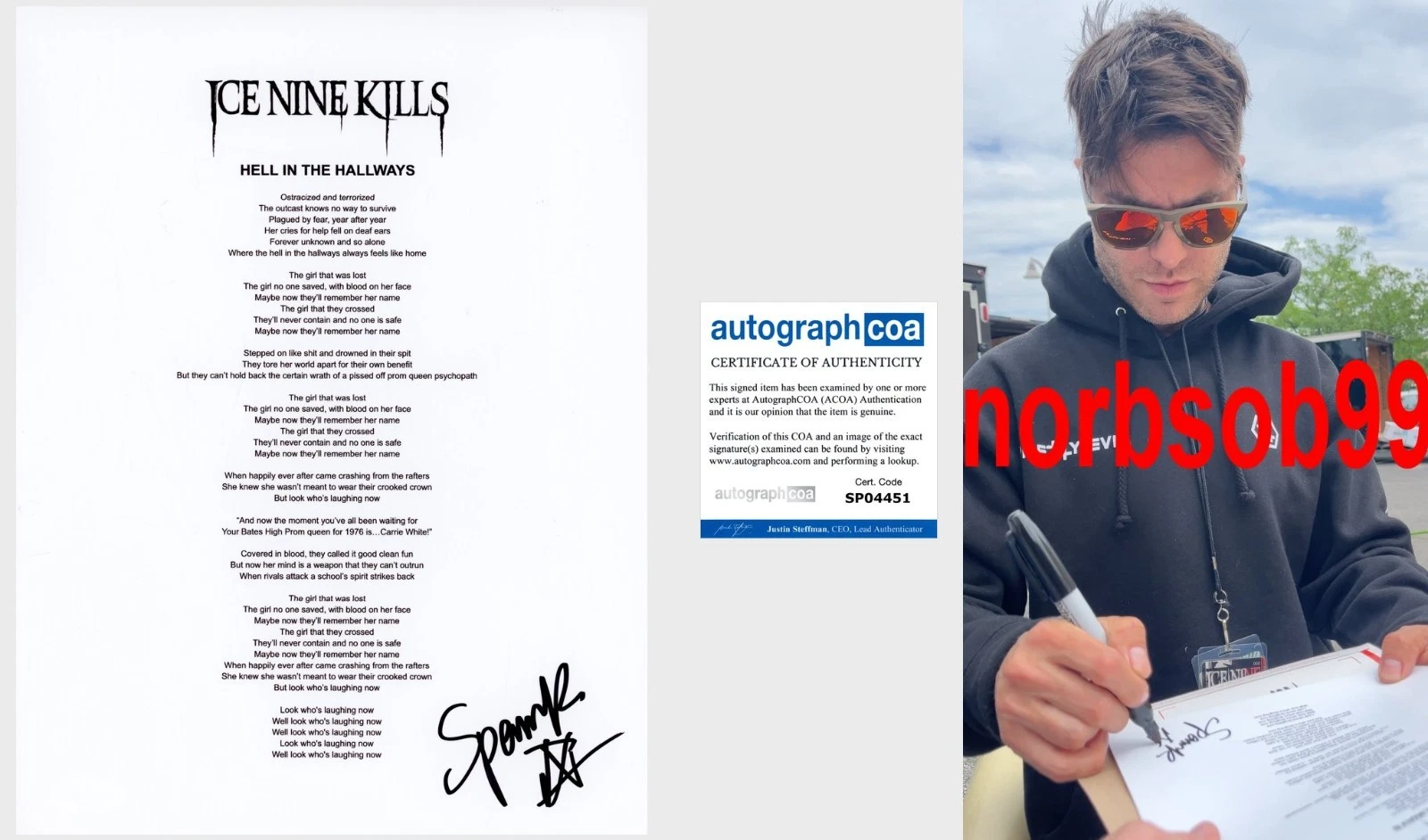 SPENCER CHARNAS SIGNED ICE NINE KILLS HELL IN THE HALLWAYS LYRIC W/PROOF COA COLLECTIBLE MEMORABILIA