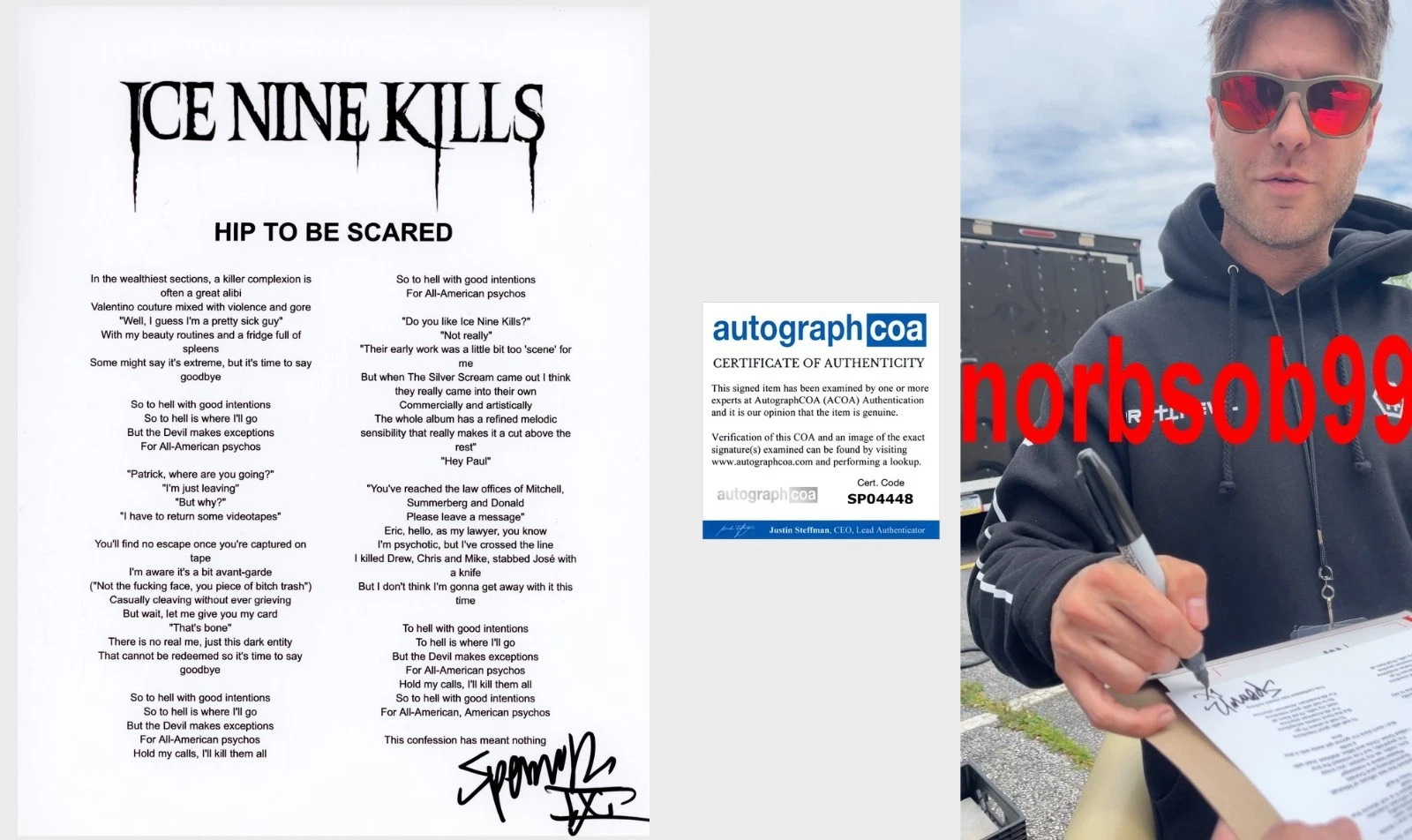 SPENCER CHARNAS SIGNED ICE NINE KILLS HIP TO BE SCARED LYRIC W/EXACT PROOF COA COLLECTIBLE MEMORABILIA