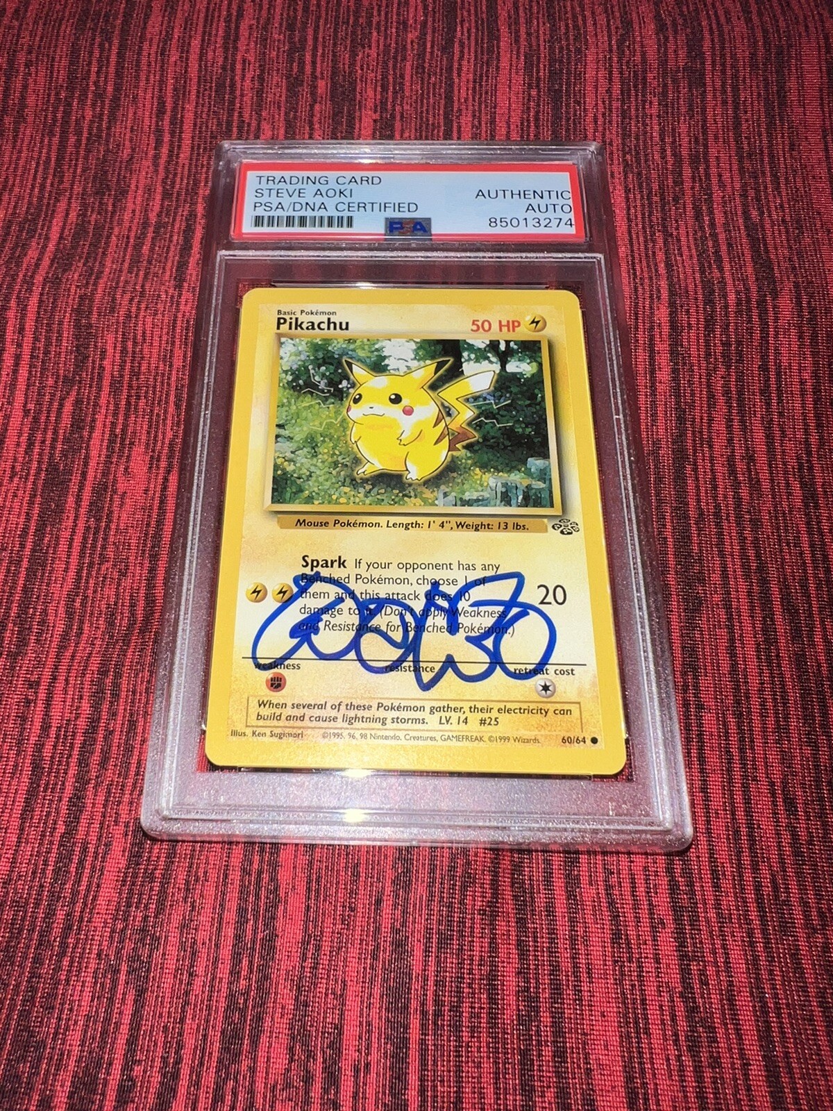 STEVE AOKI SIGNED OFFICIAL POKEMON TRADING CARD 1999 60 JUNGLE PIKACHU PSA/DNA COLLECTIBLE MEMORABILIA