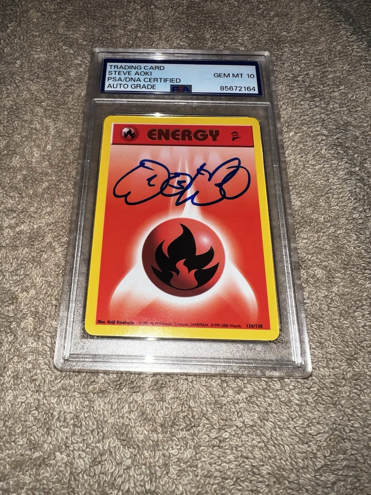 STEVE AOKI SIGNED OFFICIAL POKEMON TRADING CARD FIRE ENERGY PSA/DNA AUTO 10 COLLECTIBLE MEMORABILIA