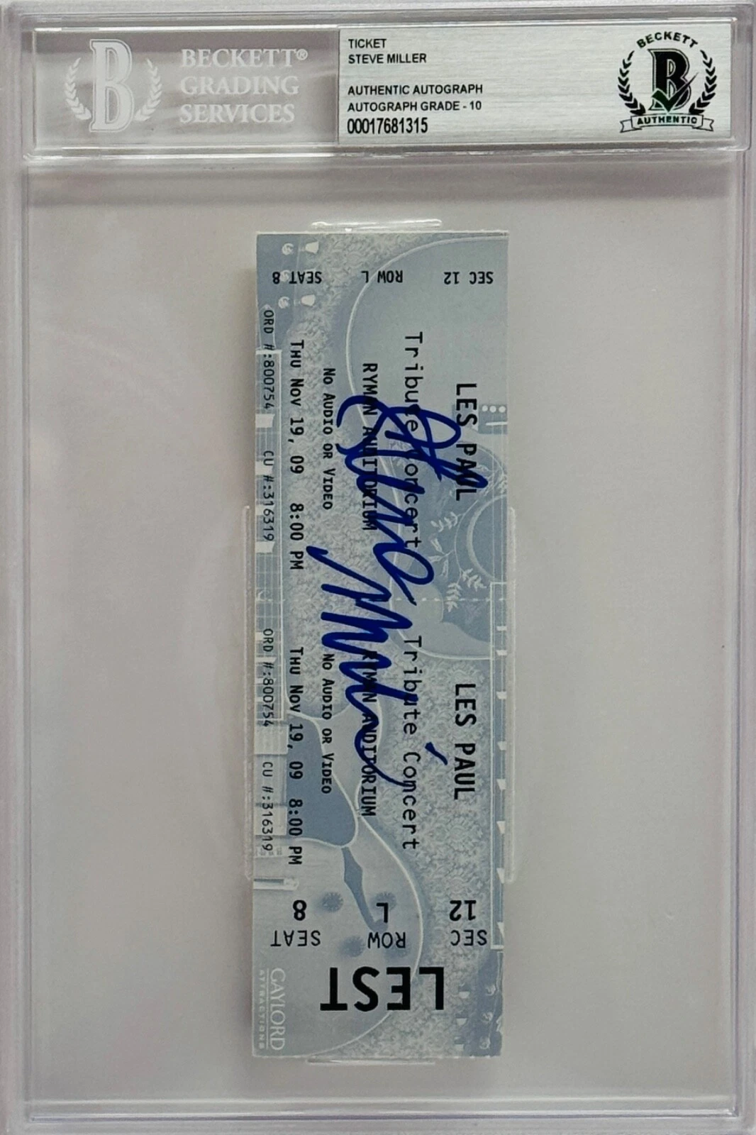 STEVE MILLER SIGNED AUTOGRAPH SLABBED ENCAPSULATED CONCERT TICKET BAS GRADED 10 COLLECTIBLE MEMORABILIA