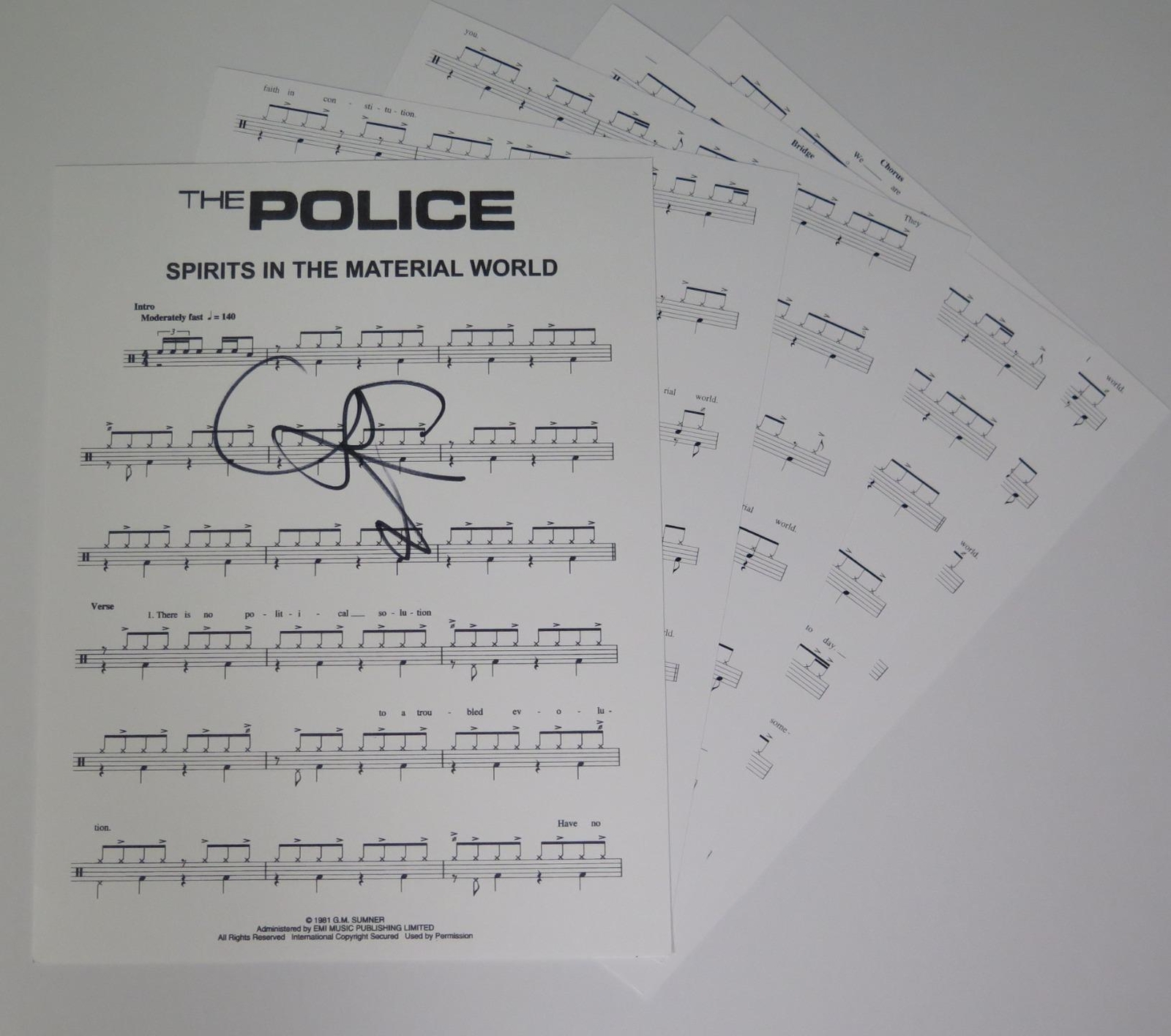 STEWART COPELAND THE POLICE SIGNED “SPIRITS IN MATERIAL WORLD” DRUM CHART JSA COLLECTIBLE MEMORABILIA